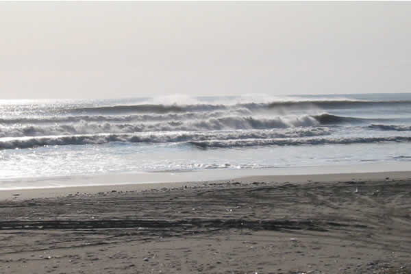 ■4日目、今度はバリアンです!朝一到着時、風もなく面ツルツル!上から見てもセットもよさげ。急いで入水。一番奥のピークまで遠いよ。セット頭半位かな?でかいんだけどトロくて続かない!それでも最初のドロップは豪快。デカイの乗ったぞ!って感じがいい!で、、初めての体験なんだけど。沖で波待ちしているとき水がチョロチョロ流れる音がする???なんで??幻聴??横にいたビアさんに聞いてみたところ彼も聞こえるらしい??良く聞くと板のフォームがピチピチと音をたてている。不思議?なんだろうね?