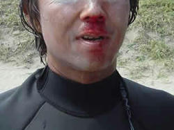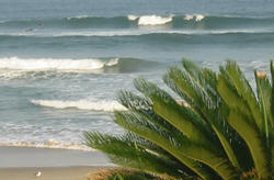 到着時 コシ〜ムネで割と綺麗に割れているので入水。ピーク貸し切りも大潮で引き一杯の為にリーフに手が当たるほど引いている。レギュラーをインサイドまで何本か乗り継いだところで直ぐに南東が強くなり面が荒れてきたので撤退。