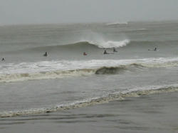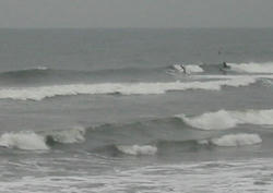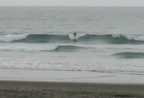 腰。面は吉崎より綺麗でしたがやる気が無くなるような波。アウトとインサイドに別れていてアウトの波は途中消えてしまう!乗ってもフェイドアウトするんでつまんない!こういう波だとサンタは厳しいな!