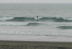 風の予報ハズレ、、オフの微風で腰腹たまのセット胸位。とろワイドなダンパーでテイクオフから2ターン位でうねりに戻ってしまう。何本がいいポジションから乗るも板がね???やっぱりサンタは失敗かも、、、もう少し乗って研究してみます。ヤスオもFG7との相性悪いな〜。