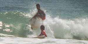 スポーツに怪我は付き物。でも出来ればしたくないものです。気をつければ防げる怪我もありますし、不可抗力で怪我してしまう事もあります。じゃあ、どうしましょ。サーフィンの怪我は殆どボードがらみ、人にぶつかったり、自分のサーフボードに当たったりが殆どだと思います。ちなみに僕は目の上をノーズで切ったこと、人の板が当たって鼓膜が破れたこと、変なワイプアウトをして靱帯が伸びてしまったこと、岩に激突して足の裏がギザギザになってしまったこと、その他小さい怪我はしょっちゅうです。まず、絶対に言えることは、凄く混んでいるポイントは避けた方が無難です。怪我をする確率もグッと高くなるわけですし、誰かを怪我させる事もあり得ますし、波が少しぐらい悪くても他のポイントに移動した方が良いでしょう。「ロングボードなら大丈夫!」いやいや、そんなことは無いですよ。最近、ロングに乗っていると、波待ちはアウトの方にいる訳ですが、セットが入ってパドルし始めると、自分の後ろにはショートボードが鋭いハリの山みたいにこちらに向いて浮かんでいます。乗って行くと退いてくれるのかと思いきや、ドンドン迫ってくる。よけながら乗れば波に捕まってしまうし、いいポジションで乗っていけば必ずぶつかるし。ショートボードの初心者は睨まれた猫みたいに動けなくなりますしね。でも、あのとんがりノーズは怖いですね。ゴムのガードをつけていてくれればまだしも、直に当たったら痛いなんてもんじゃない、絶対怪我します。ロングだって流してしまったらコードが長いのでショートボードに当たる確率が高い、あれが当たったらタイソンのパンチの如くノックアウト。あと、スケッグが当たるとウエットの上からでもカッターで切ったように肌まで切れていたなんて事結構ありますからね。皆さんも気をつけましょうね。