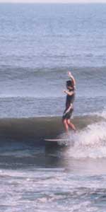 サーフィンを始めたきっかけは?女の子にもてるため!「見た目、ガングロで〜TATOOとかキメて〜ロンゲのサーファーだったら超COOLだし、、」と言ったかどうかはわかりませんが、女の子にモテタイが為にサーファーになった方も多いのではないでしょうか。いつの時代でもきっかけなんてそんなものです。僕のきっかけはそんなもんでした。サーフィンを始める前はロックバンドをやっていた訳ですが、そこでのパートはギター。なんでギターなのかは?女の子にもてるため!学園祭のステージでギター弾きまくり、追っかけギャルがわんさかわんさか。といかないのが世の常。その頃、カーリーヘアーの長髪とかダサイの代表格に成り下がっていたのです。やっぱりユーミンの曲にのせてきれい系のテニスサークル、スキーサークルでしょう。しかし、それは出来ない。そんな中で浮上してきたのがサーファーでした。おかっぱ、口ひげ、色黒、いつもビーサン、しぶい!ノートバインダーにはSEX WAXのシール。なんか久々、危ない臭いのする奴らの登場でした。おまけにサーファーギャル。アグネスラム好きの僕としては、はっきり言って嫌いなわけが無い。で、その時のサーファーとしての第一歩は別にしても、やればやるほどはまるスポーツそれが、サーフィンでした。ギャルにモテモテと言う恩恵にあずかれず、はたまた、体力の衰えとともに志し半ばで脱落していく仲間を何人も見てきました。じゃ、おまえはそんなにモテモテなのか?いいえ、僕はもうサーファーでも旧型ですから、そんなことはありませんよ。クラゲ見たいに海にプカプカ、いい波に乗った時の空に浮かぶ様な浮遊感、嫌なことを忘れられる至極のひと時、だから今も続けているのでしょう。でも、最近は人の多さでイライラするのがイヤで少しずつ海から遠ざかりつつあります。