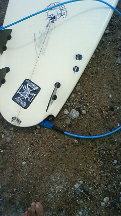 この事故の為、2ラウンド目は借り物のノーズライダー(7ft位かな??)で仕切り直し!