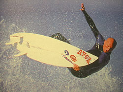 先日まで今話題のアルメリックのフライヤー6'4"サーフテック・タフライトに乗っていました。その前は変わったフィッシュ系に乗っていたため、普通のアウトラインの板が調子良かったみたいで、、大変気に入りました。タフライト・フライヤーは特にレールがボキシーでそれだけでも浮力は有りスピードが出ました。さて、、半年位使用して(その間、バリにも持っていった)普通の板に戻したときなんか違うっと思い始めたのです。
