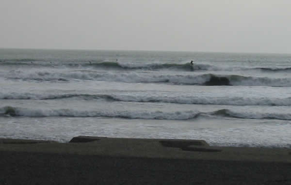 今日は面悪で板がバタつく!!こういうコンディションだとテイクオフもままならない。キワドイ所からテイクオフしてもボトムまで降りる途中に飛ばされたり散々でした。レギュラー・グーフィーともに1本ずつ形の良いのをインサイドまで乗ったけどスピーディーじゃなかったな。要は板の変な浮力とレールの変な反発力で浮き上がり過ぎちゃう。もっと軽い感じでサッサカ動かすサーフィンなら良いかも知れないけど私には合わないと判明!!これが精一杯かな?? なら普通の板に乗っていた方が面白いので今日でサヨナラ!