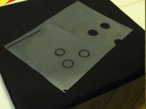 クリアファイルで実際のQUAD(Lost Shark Quad)の穴の位置をマジックでコピーしたモノを用意しました。