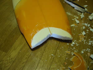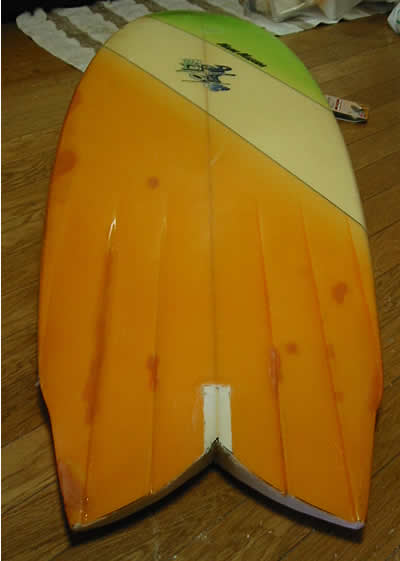 センターにシングルのフィンボックスが入っていたので抜いたあとフォームで補修。