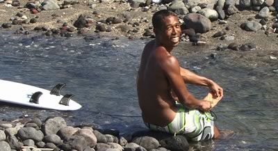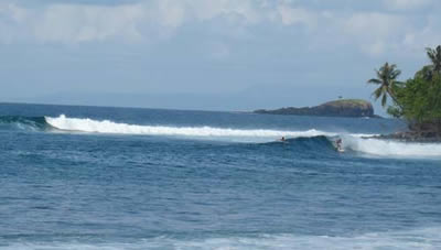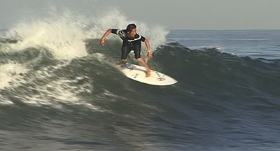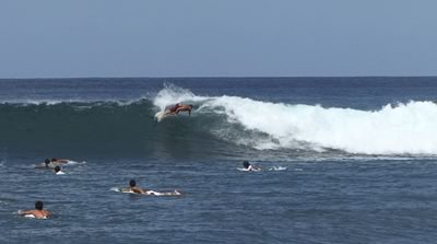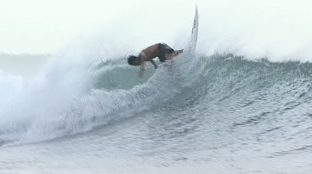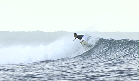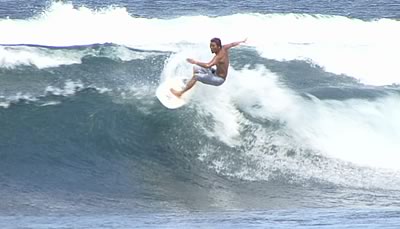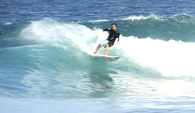 取りあえずドリアンと合流して一発目はお約束のエアポート。 あまりサイズなくオフが強くて面はガタガタでした。 でもしっかりした波だから遊べちゃう。LUVSURF チームは早速撮影! 今回はLOSTじゃなくてPLACEBO一気乗りです。 ダイスケ君は船の上で撮影大変そうだ。 どうしても画面揺れちゃうからね。