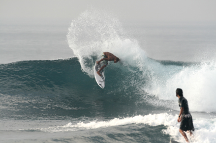 午後からはメインのライト。ど三角に入ってきて、ファーストブレイクは結構掘れている。まあまあ良いのに乗れたかな?ここにいたボルコムのライダーらしいキッズは凄い!インサイドの浅い岩岩のところで必ずエアーを決める!なんたってラウンドハウスから360リバースエアーなんて〜のを決められたら。唖然としちゃうよね。しかし、ココ結構なカレントで疲れました。