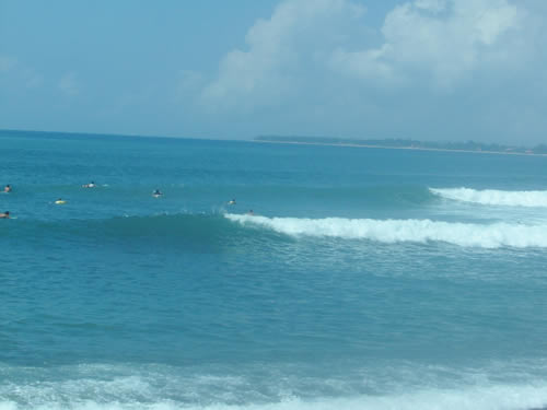 ■4日目、今度はバリアンです!朝一到着時、風もなく面ツルツル!上から見てもセットもよさげ。急いで入水。一番奥のピークまで遠いよ。セット頭半位かな?でかいんだけどトロくて続かない!それでも最初のドロップは豪快。デカイの乗ったぞ!って感じがいい!で、、初めての体験なんだけど。沖で波待ちしているとき水がチョロチョロ流れる音がする???なんで??幻聴??横にいたビアさんに聞いてみたところ彼も聞こえるらしい??良く聞くと板のフォームがピチピチと音をたてている。不思議?なんだろうね?